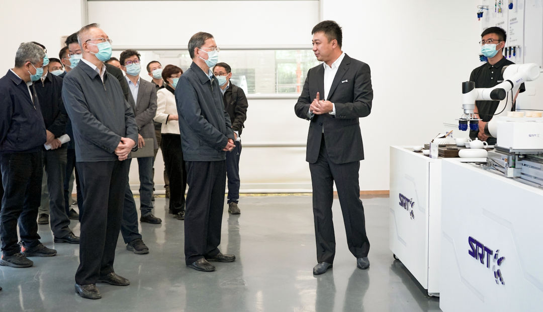 The research team came to Beijing Soft Robot Technology Co., Ltd. (hereinafter referred to as "SRT") to conduct research and discussions. Zhang Yanqian, Deputy Director of the First Bureau of the United Front Work Department of the Central Committee, Wang Hailin, Deputy Director of the Small and Medium Enterprise Bureau of the Ministry of Industry and Information Technology, Bai Chongen, Wei Chu, Li Donghong and other experts and scholars, Min Chen Bailing, director of the Research Department of the Central Committee of the Communist Party of China, and Ding Liangchun, deputy director of the Central Committee, participated in the investigation. You Jun, Member of the Standing Committee of the CPC Beijing Municipal Committee and Minister of the United Front Work Department, Zhou Jingxiao, Deputy Minister, Sima Hong, Chairman of the Beijing Municipal Committee of the Democratic National Construction Association, Li Shenhong, full-time Vice Chairman, and Wang Lei, Deputy Director of the Beijing Municipal Bureau of Economy and Information Technology, accompanied the investigation.