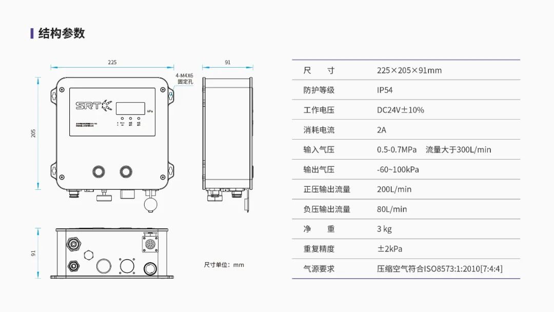 The faster the claw speed, the higher the production efficiency. Therefore, the scb-pbs series controllers optimize the previous generation control system, and the output gas pressure accuracy can reach ±2kPa, and the flow rate can reach 200L/min.