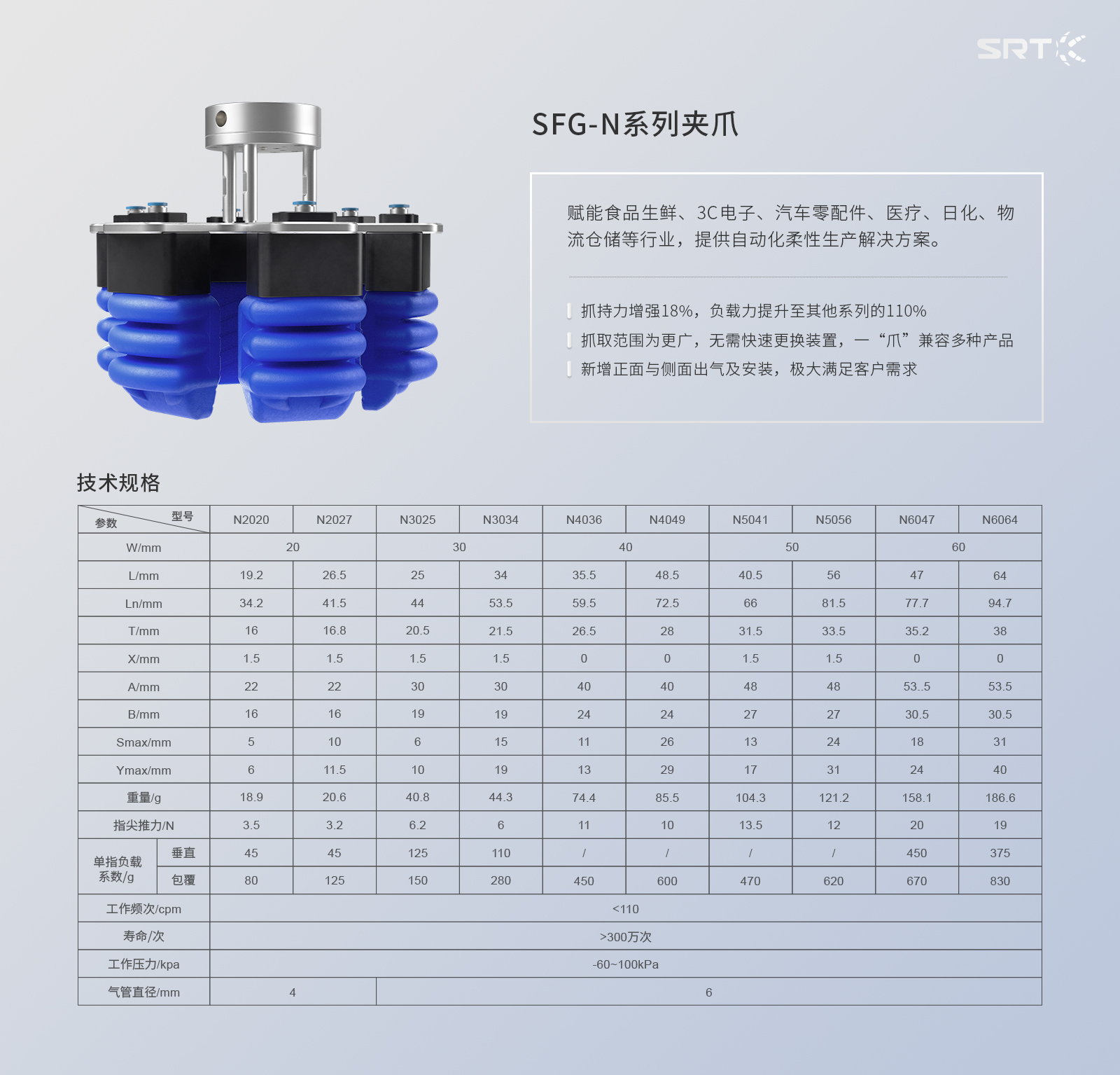 SFG-N系列柔性機(jī)械爪技術(shù)參數(shù)