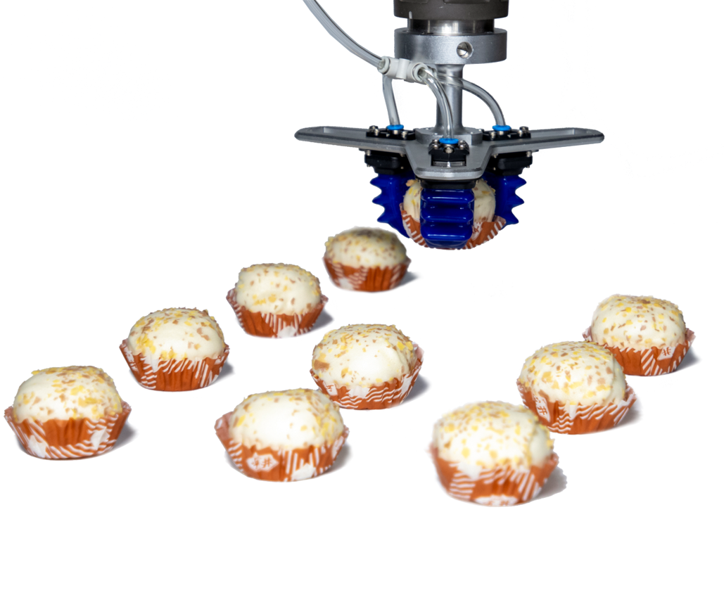 經(jīng)匹配SRT的柔性機(jī)械爪后,在原產(chǎn)線上可進(jìn)行面團(tuán)的分揀、抓取,實(shí)現(xiàn)自動(dòng)上下料,解決產(chǎn)線原有難題。柔性機(jī)械爪是由食品級(jí)硅膠材質(zhì)制成,可以直接接觸食物,不會(huì)造成污染,并可自適應(yīng)包覆住目標(biāo)物體,對(duì)同種類尺寸、形狀差異較大的面團(tuán),抓取不掉料,解決了客戶的需求。