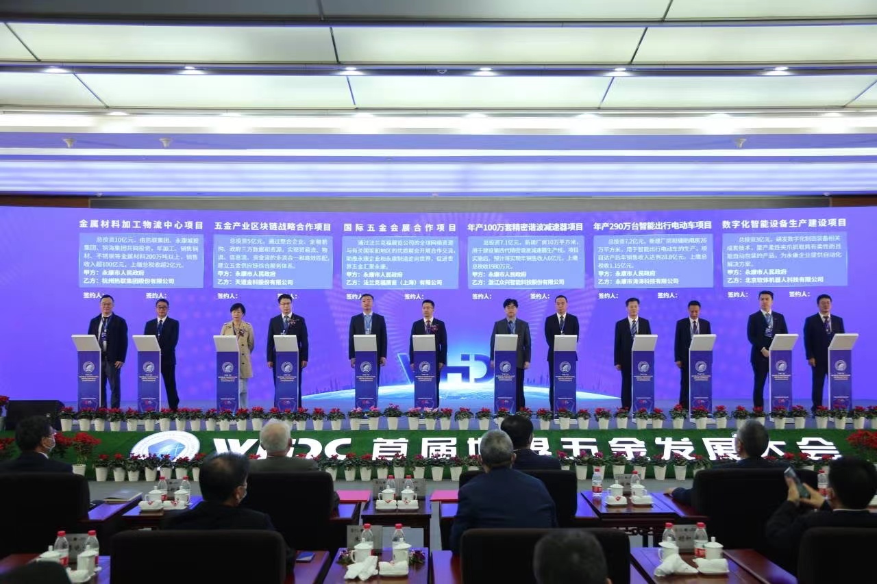 11月1日上午,在首屆世界五金發(fā)展大會上,舉行了項目簽約儀式,由永康市領(lǐng)導(dǎo)、相關(guān)單位負(fù)責(zé)人與項目企業(yè)代表以電子簽約的方式簽署協(xié)議,項目總額達(dá)190.2億元。