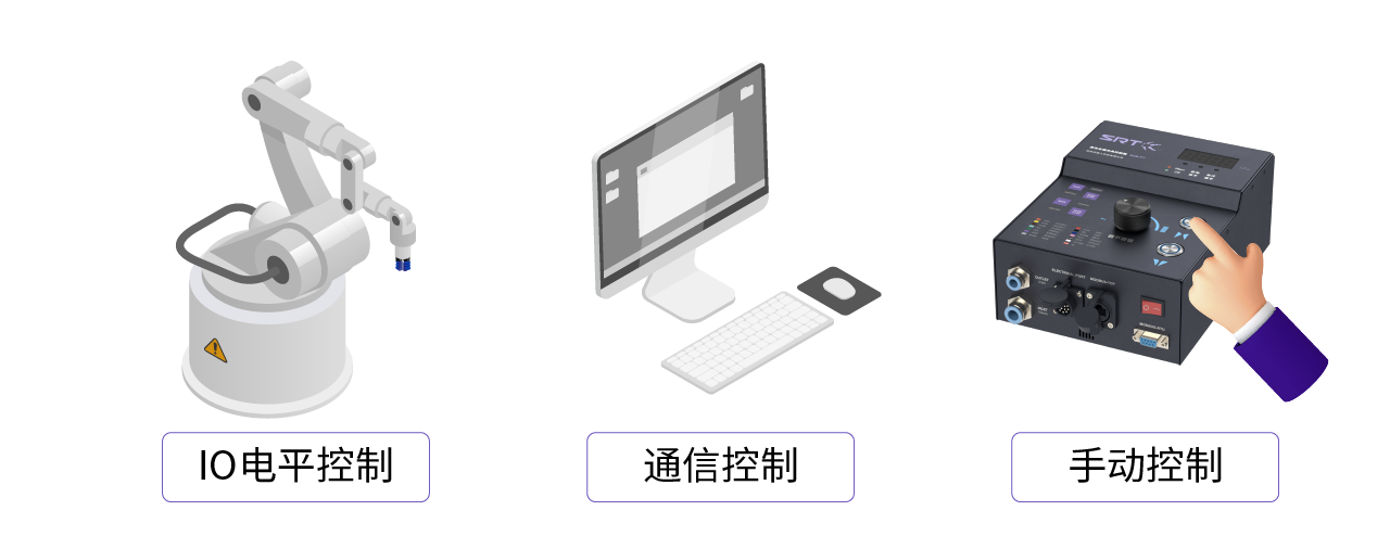 手動控制,IO電平控制,通信控制;適配多種場景:手動演示,工業(yè)產線循環(huán)工作,通信二次開發(fā)等。