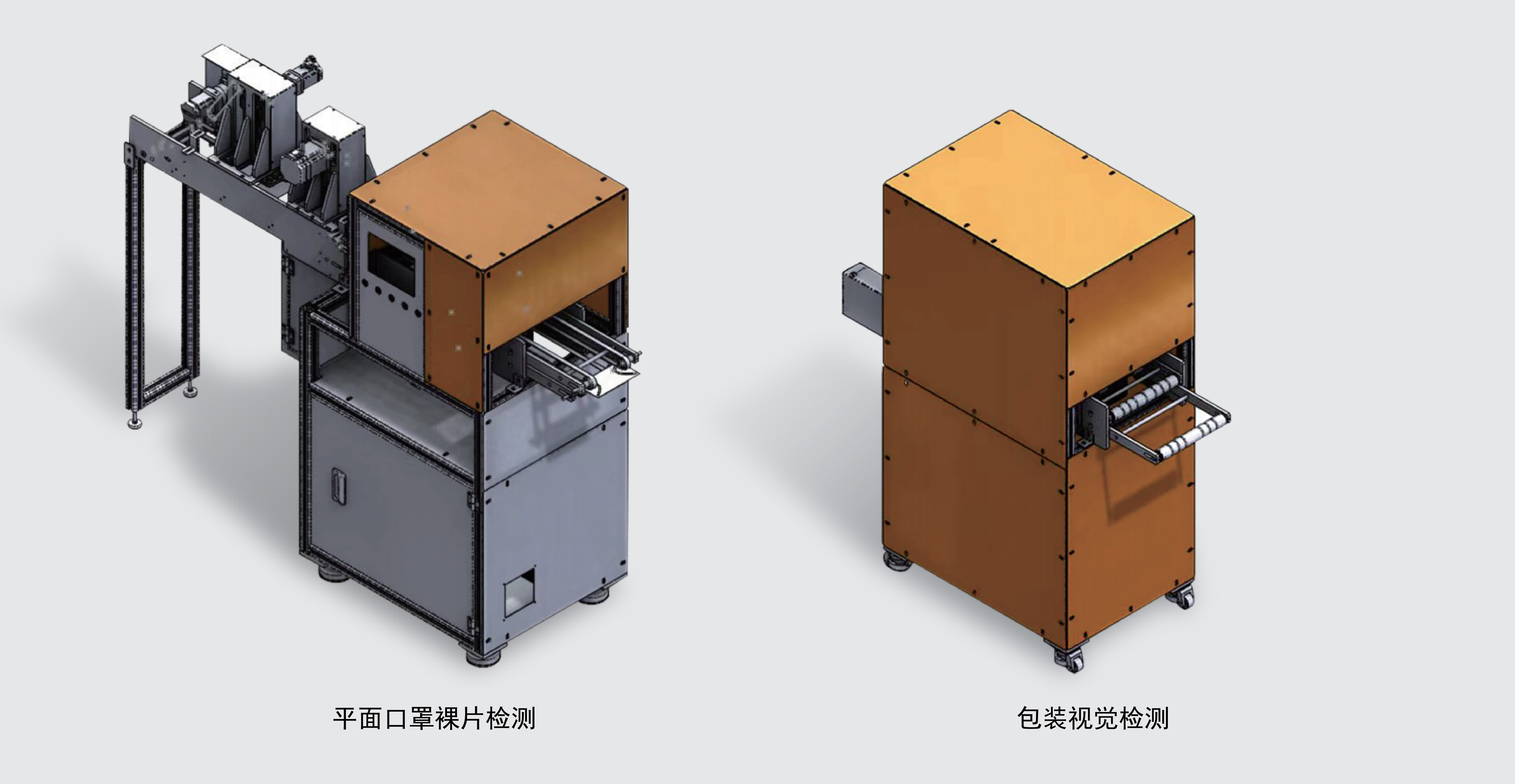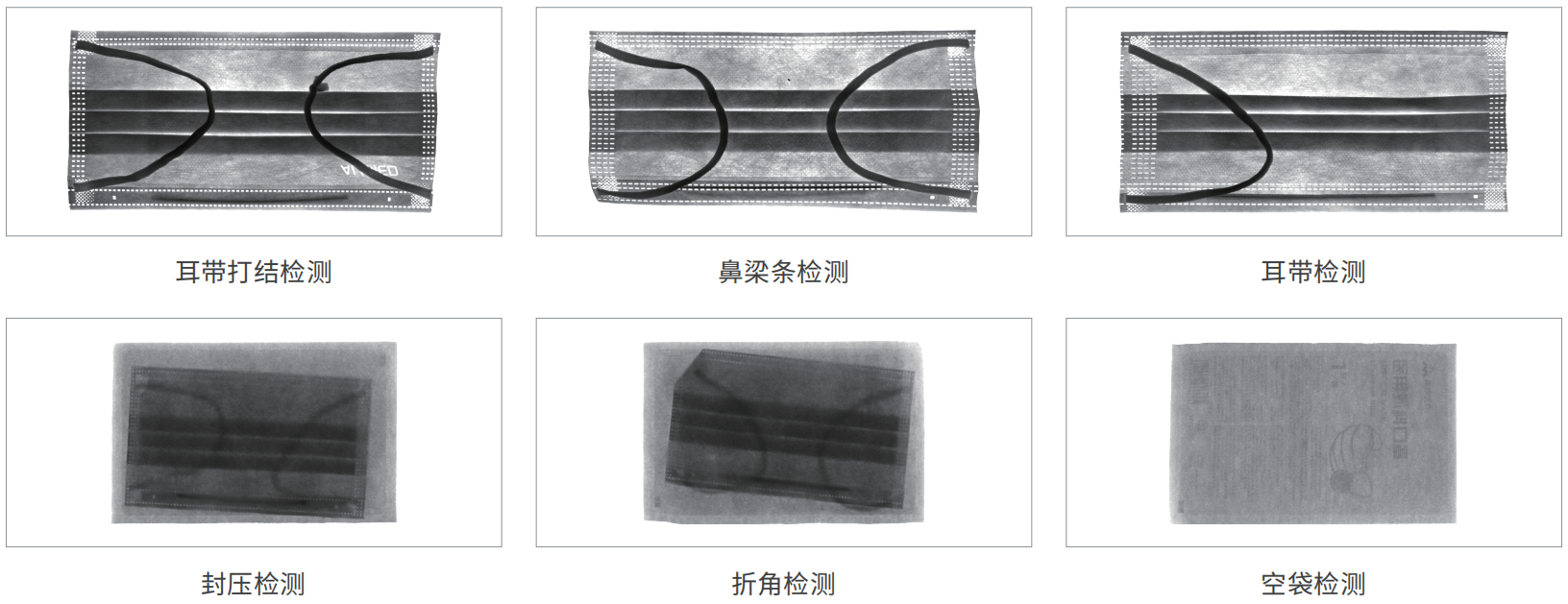 同一套檢測裝置可實現(xiàn)多種口罩裸片或者口罩包裝的檢測,并可以實現(xiàn)快速切換,兼容成人口罩、兒童口罩及各種定制口罩、紙紙包裝、紙塑包裝;