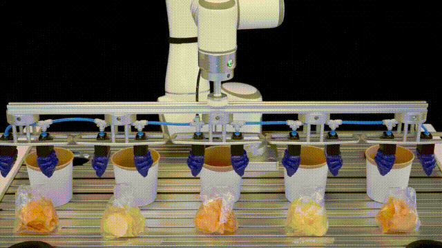一排五爪,陣列式抓取,一次可以抓取五個目標(biāo)產(chǎn)品,相比人工操作,SRT柔性夾爪效率更高。此外,只需要進行簡單的編程,SRT柔性夾爪除了抓取、內(nèi)撐以外,還可以完成提、點、按、推等其他精細動作。