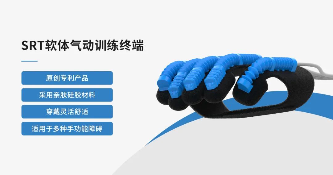 SRT軟體氣動(dòng)訓(xùn)練終端,是結(jié)合結(jié)構(gòu)學(xué)、材料學(xué)及空氣動(dòng)力學(xué)的原創(chuàng)專利產(chǎn)品,采用親膚硅膠材料,整體結(jié)構(gòu)結(jié)合懸浮波紋氣動(dòng)肌肉與軟體動(dòng)作執(zhí)行器,使得訓(xùn)練終端運(yùn)動(dòng)表現(xiàn)優(yōu)異,穿戴靈活舒適,整體包覆感極強(qiáng)。適用于各種原因?qū)е碌氖止δ苷系K患者的手康復(fù)治療。