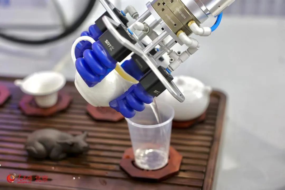 這款作為中共二十大新聞中心的展示設(shè)備,不僅將軟體機(jī)器人的“柔性”特點(diǎn)發(fā)揮到了極致,同時實(shí)現(xiàn)了模擬煮茶師從倒水到泡茶的全自動制作,為我國傳統(tǒng)泡茶技藝融入了現(xiàn)代科技元素