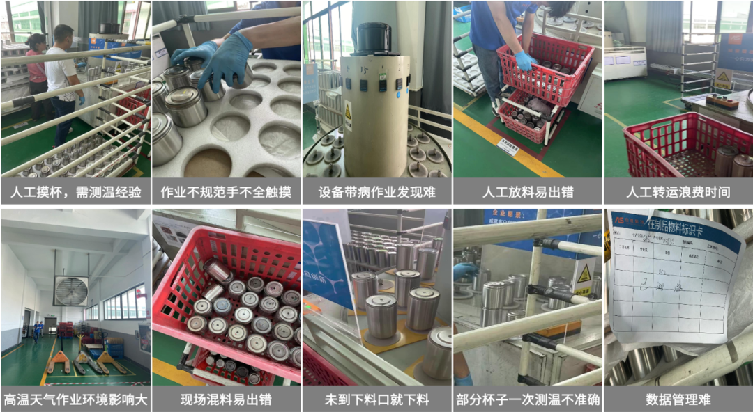 傳統(tǒng)測(cè)溫機(jī)采用熱風(fēng)管持續(xù)加熱,再用人手觸摸感知判斷杯子外壁是否發(fā)熱進(jìn)行質(zhì)檢,不僅依賴人工經(jīng)驗(yàn),且設(shè)備能耗高,致使夏季作業(yè)環(huán)境溫度可達(dá)40℃以上,存在招工難、品控難、降本難、無(wú)法自動(dòng)化的現(xiàn)象。