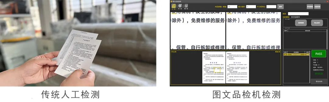 圖文品檢機(jī)可以輕松應(yīng)對(duì)這些圖文差異挑戰(zhàn),復(fù)雜的檢查3s內(nèi)即可完成,速度可提升超200倍。