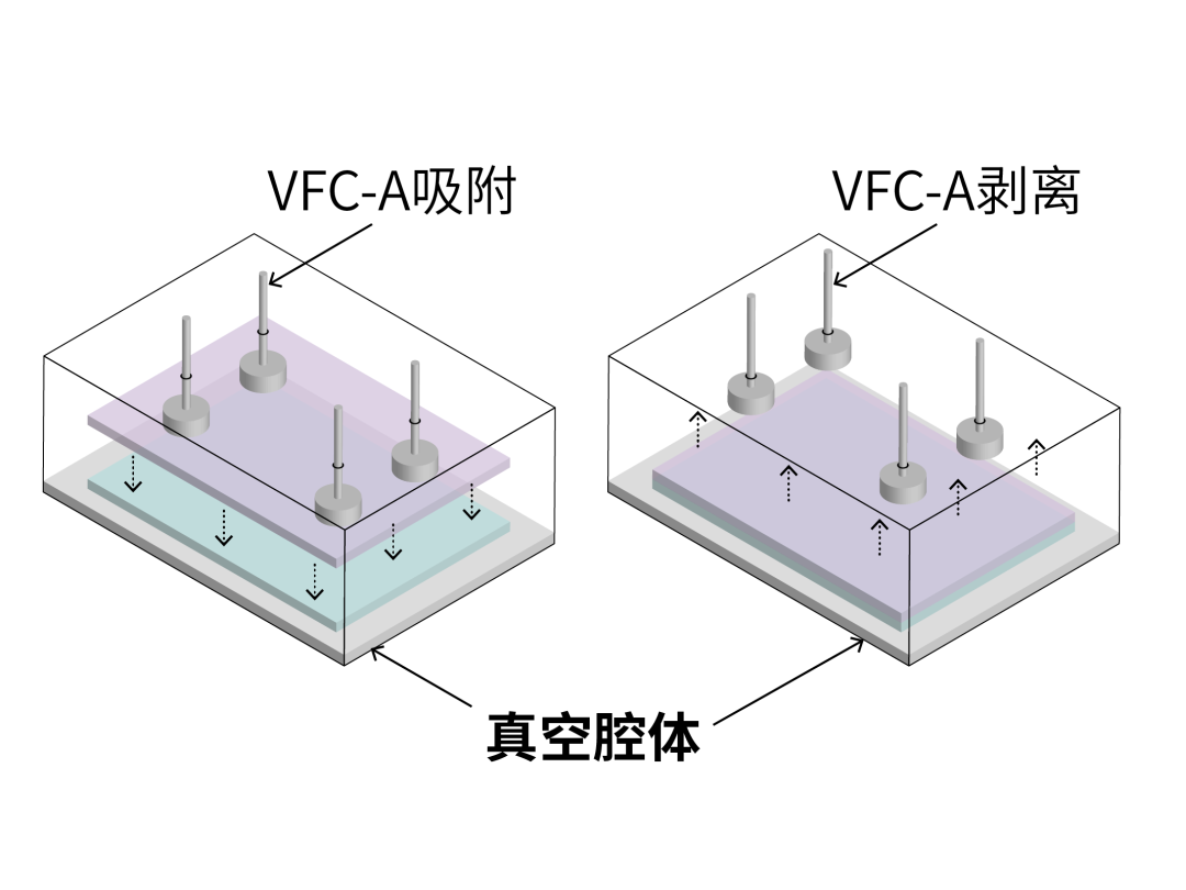 VFC-A使用原理:下料時(shí),將NBM脫著塊進(jìn)行充氣膨脹后,施力于玻璃基板,從而使基板從VFC粘著塊上剝離。