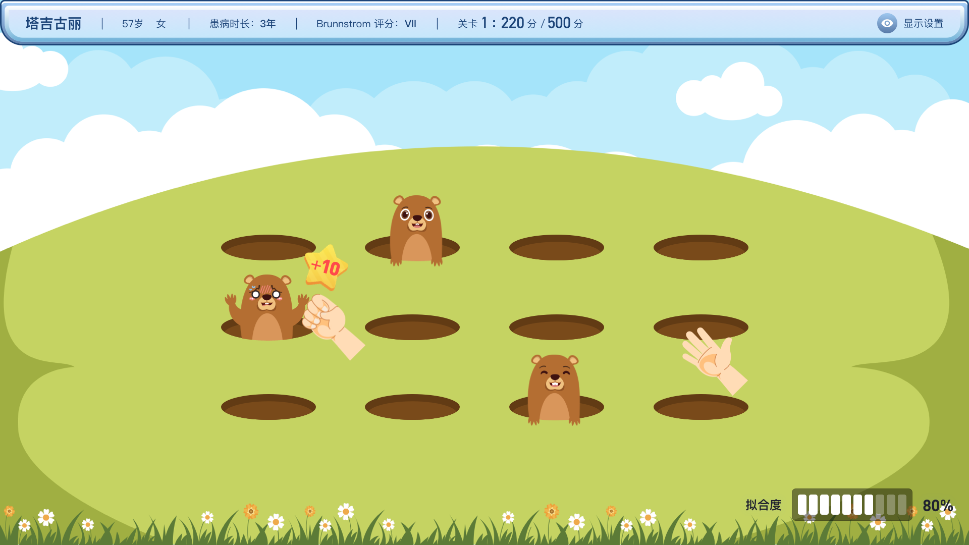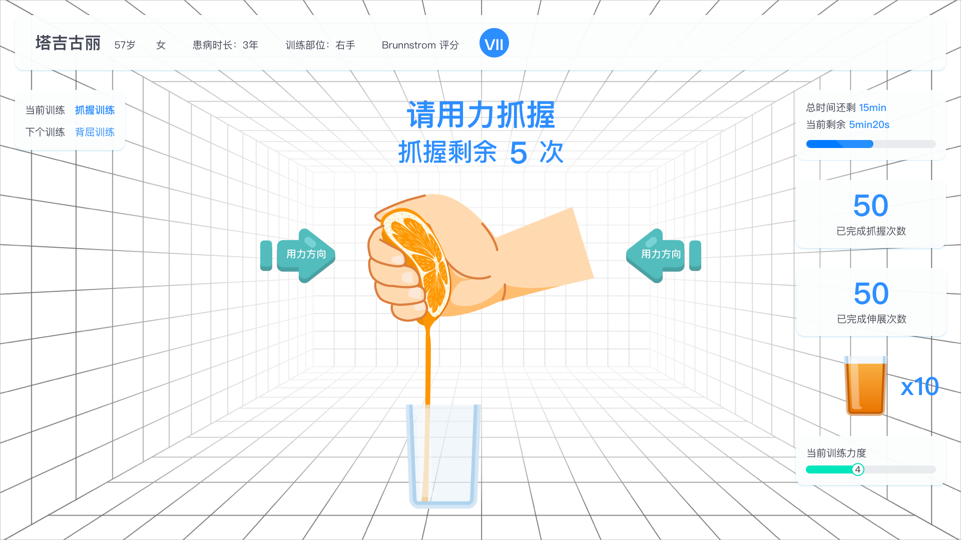 給予患者沉浸式互動體驗,通過高精度傳感器采集患者手部姿態(tài)與空間方位數據,模擬手部動作。在游戲訓練中融入積分過關機制,通過結合康復理論的互動體驗來激發(fā)患者興趣,提高訓練積極性。